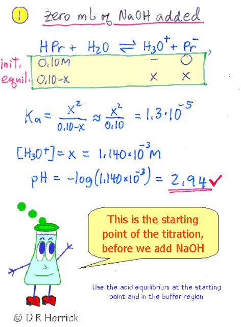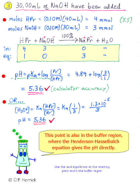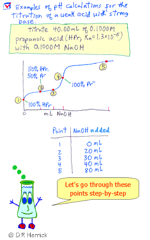 How to compute pH on a titration curve for a weak monoprotic acid
